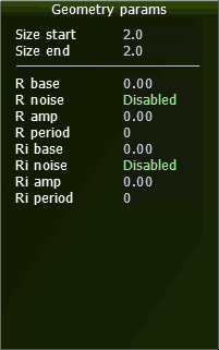 Particle geometry consists of size and rotation parameters. The start and end sizes can be used to make the particles grow or shrink as they age.