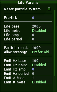 This is not the only, or the best way to make particle systems, but it's capable enough for lots of experimentation. More noise controllers could be added, for instance - even noise controller parameters might gain from some noise controllers. Maybe that's why many particle system editors are graph-based.