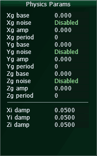 Many aspects of ThinGaMagic2000 particles are affected by noise controllers. Each noise controller has four parameters:
